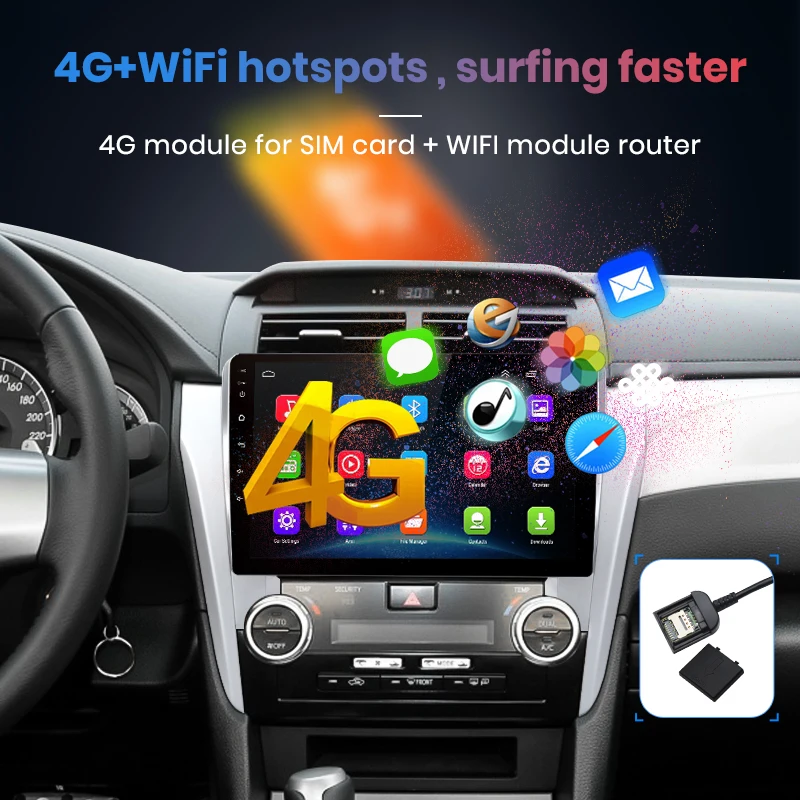 Support 4G networkThanks to 4G SIM card and built in wifi, no matter where you are driving, you will enjoy the fun from internet surfing , make it possible for online navigation/ music /movie ect.Please enter the SIM card before turn on the device.