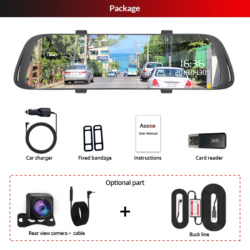 | Acceo X3 10 Touch Car Dvr Recorder Rearview Mirror Camera FHD 1080P Auto DVRs Registrar Dash cam with 1080P Rear Camera |