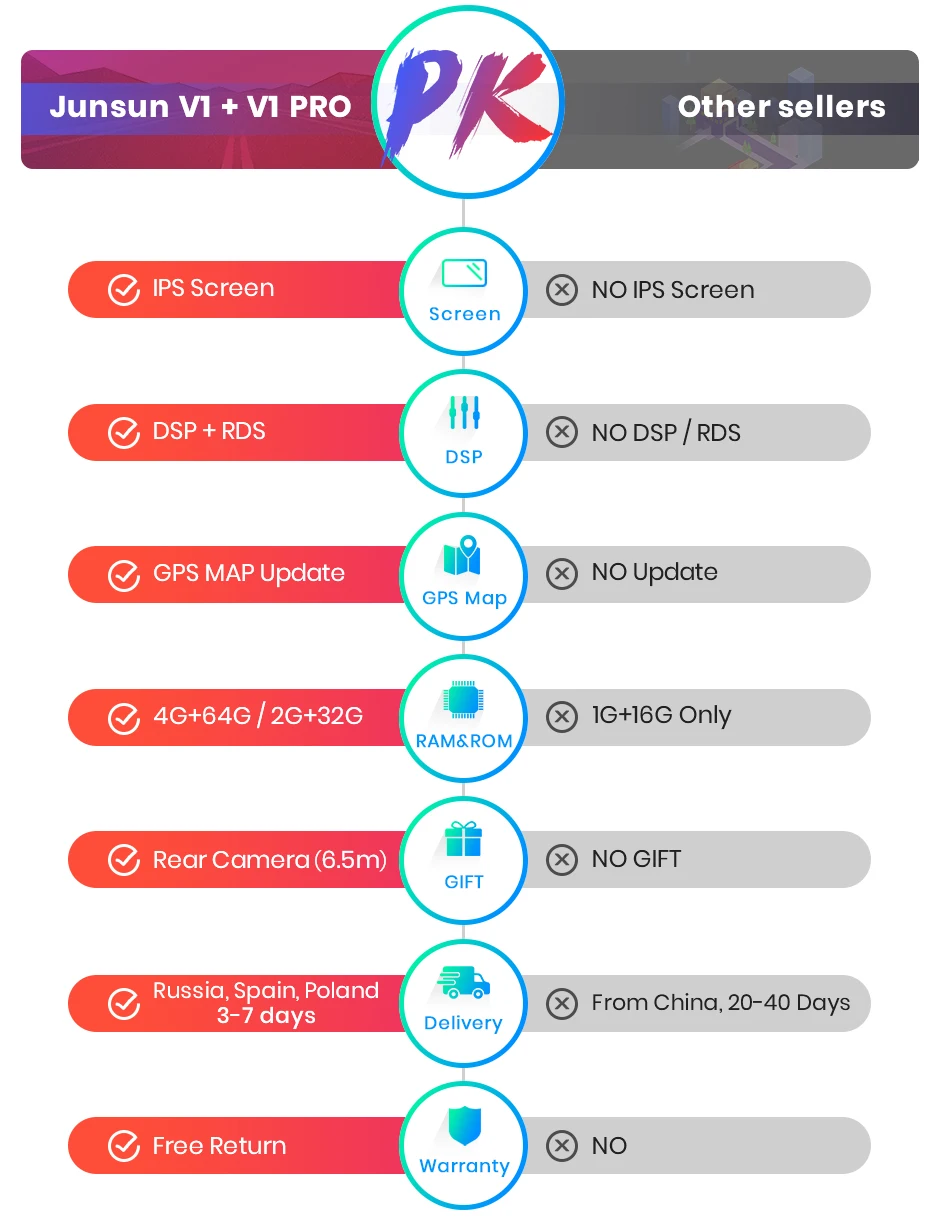 When the car in Reverse Gear, this car DVD will automatically switch to the back-up camera image view with parking line. (Junsun presents the back-up camera as a gift for free)
